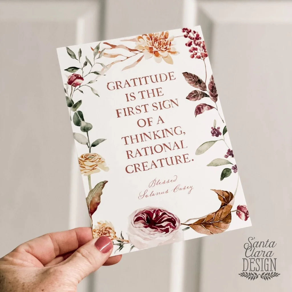 An elegant and inspirational custom designed quote from Blessed Solanus Casey, "Gratitude is the first sign..." A good gift idea for Thanksgiving, Graduation, Mother's Day, Father's Day, First Communion, Confirmation, RCIA, Christmas, Easter, Birthday, or for your home or office wall.