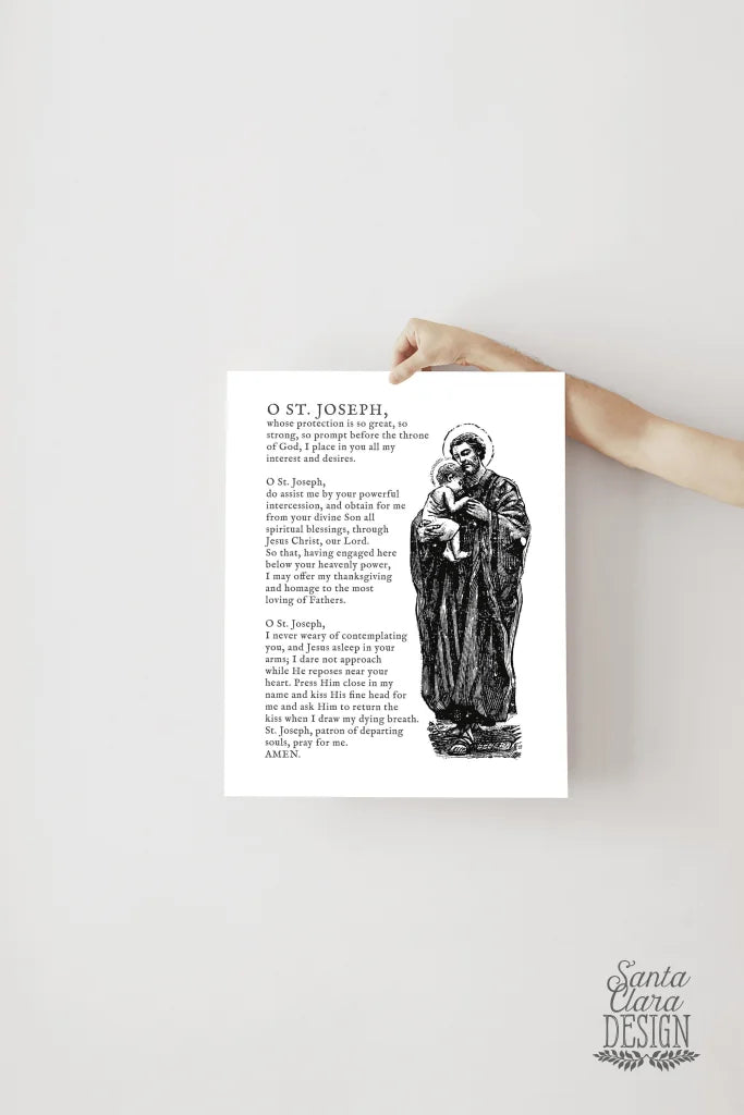 An elegant and inspirational custom designed print featuring the Prayer to St. Joseph. Perfect for gifts - perfect for anyone with a devotion to St. Joseph! Also a good gift idea for a birthday, Confirmation, Christmas, Easter, Birthday, Engagement gift, or Wedding Gift... or just because. Would also look great in your home or office wall.