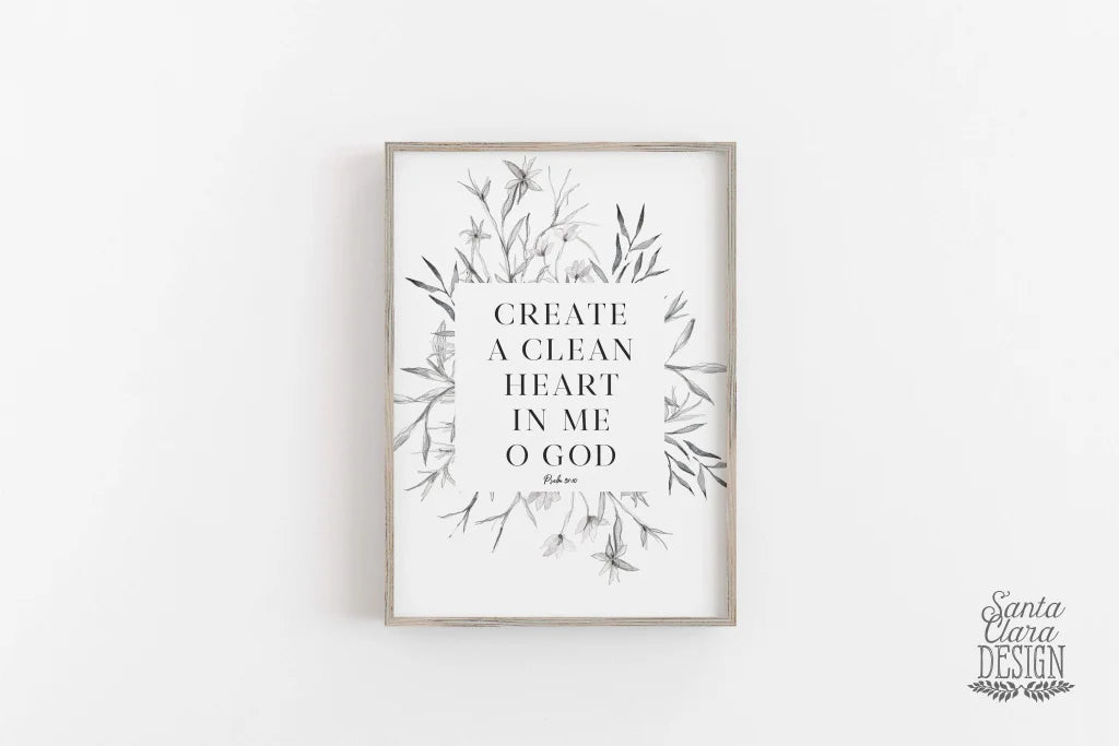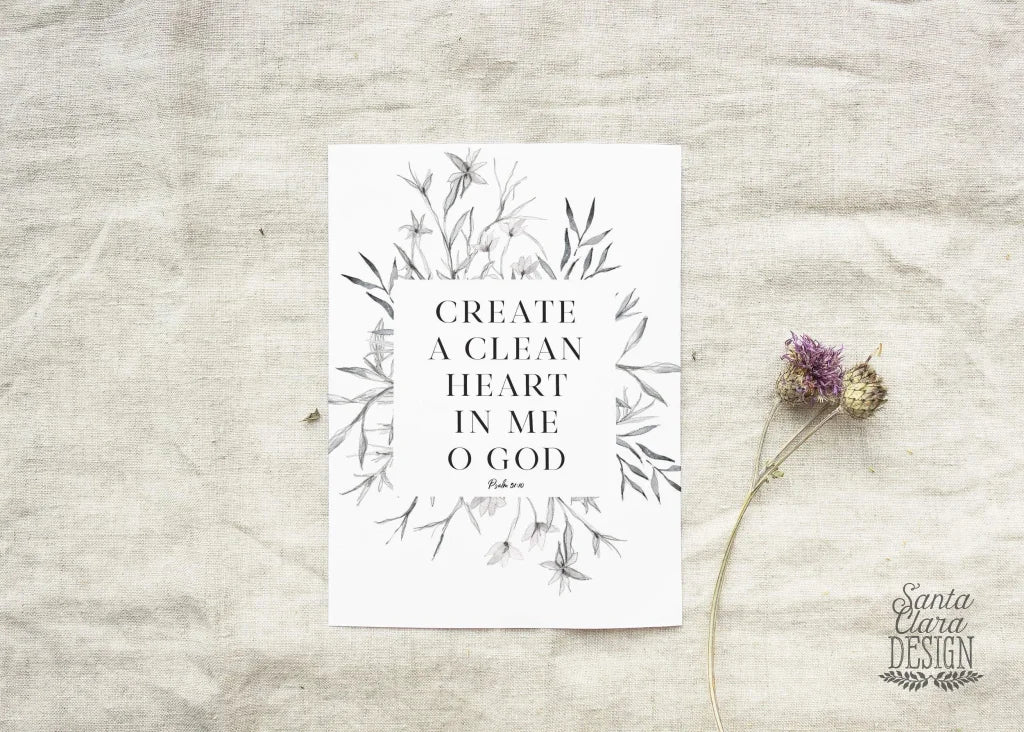 An elegant and custom designed art print of the Mother Teresa's quote: "Create a clean heart in me, O God."
