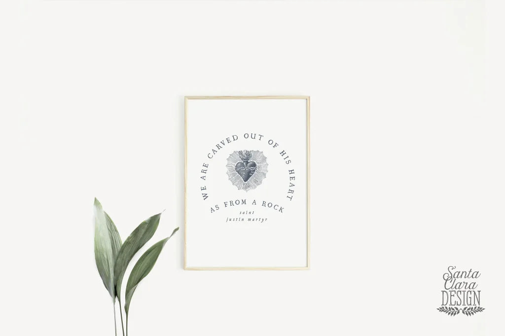 An elegant and inspirational custom designed art print of the Sacred Heart of Jesus featuring a quote from St. Justin Martyr. A perfect addition to your home decor, or a lovely gift for someone special, for birthdays, engagement gift, wedding gift, mother or mother in law wedding gift, engagement gift, priest ordination gift, for mom after the birth of a new baby, Christmas, Easter, or for your home or office wall. It comes in three sizes, to suit your needs!