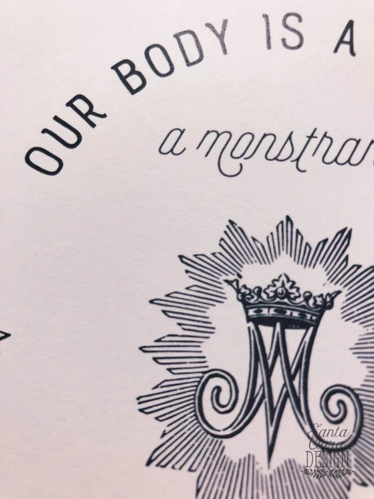 An elegant and inspirational custom designed quote from St. Gianna Molla, "Our Body is a Cenacle". Perfect for gifts - especially for Catholic ladies! Also a good gift idea for First Communion, Confirmation, RCIA, Christmas, Easter, Birthday, or for your home or office wall.