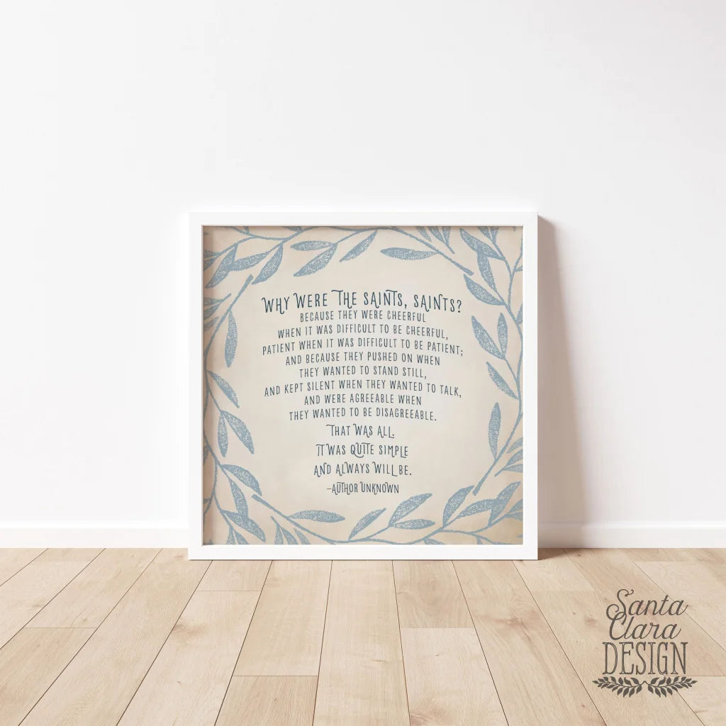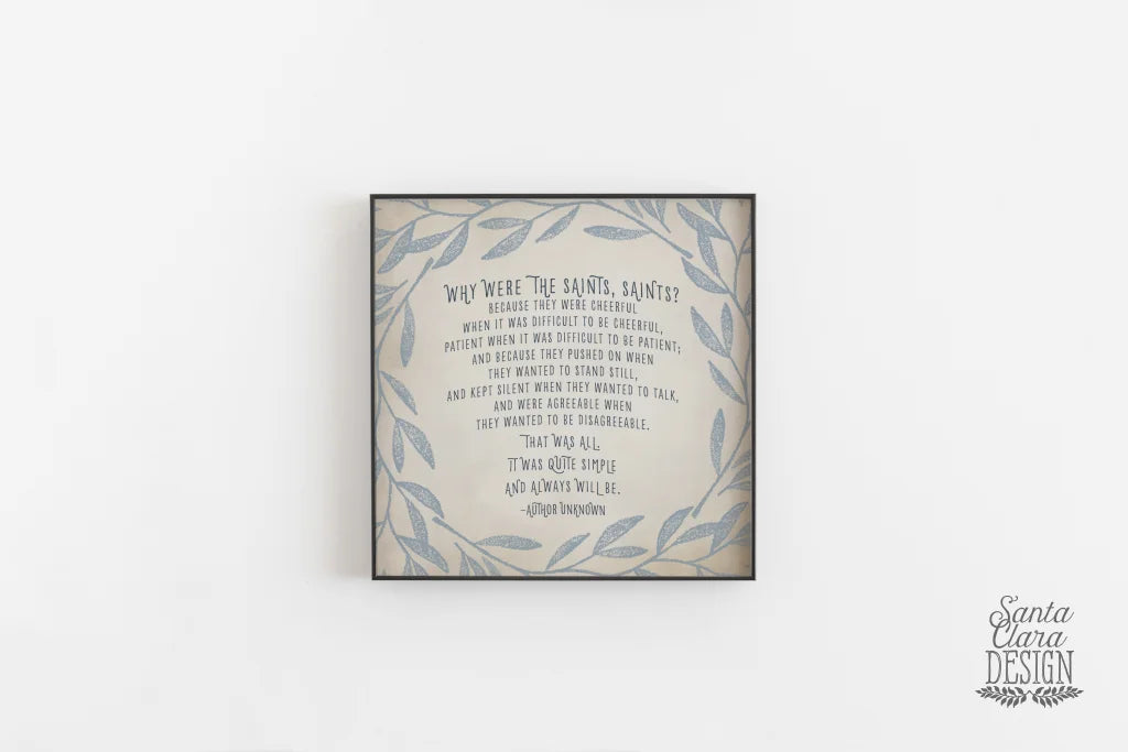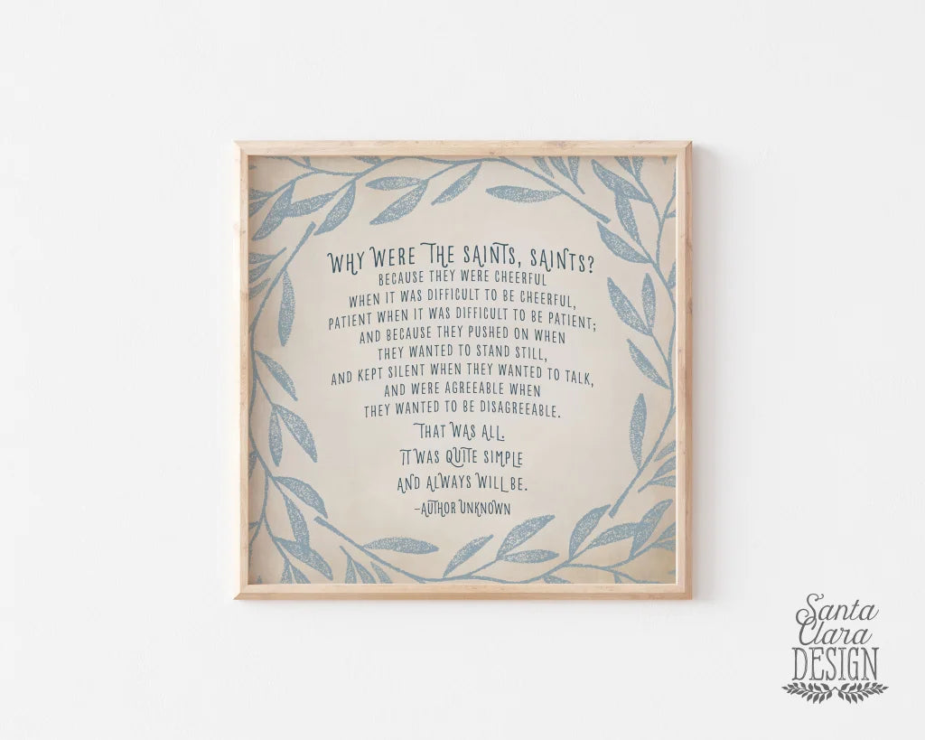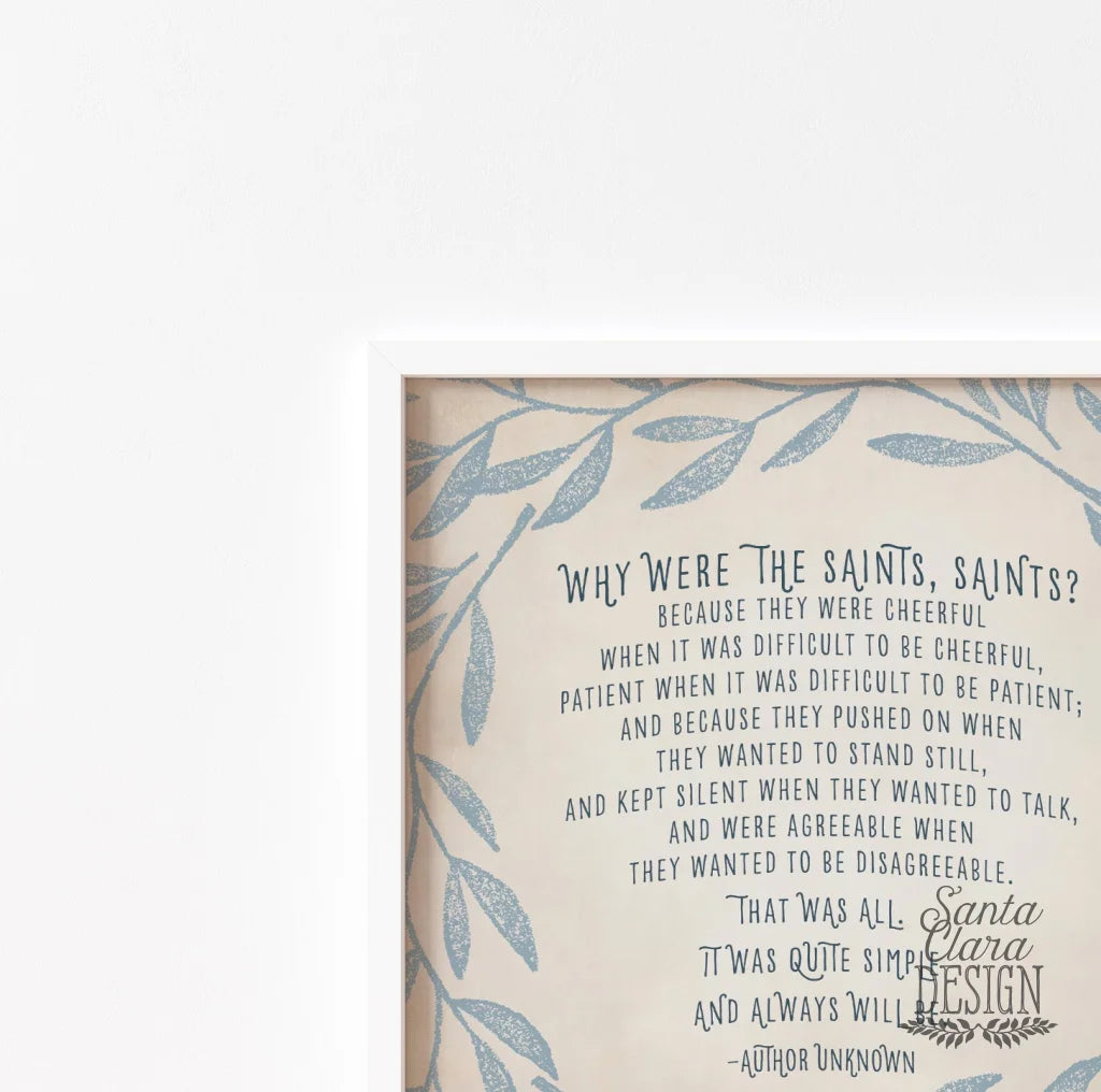 "Why were the Saints, Saints?" it begins. This anonymous passage is simple, yet so inspiring to all of us, encouraging us to live a virtuous, life, just like Jesus.