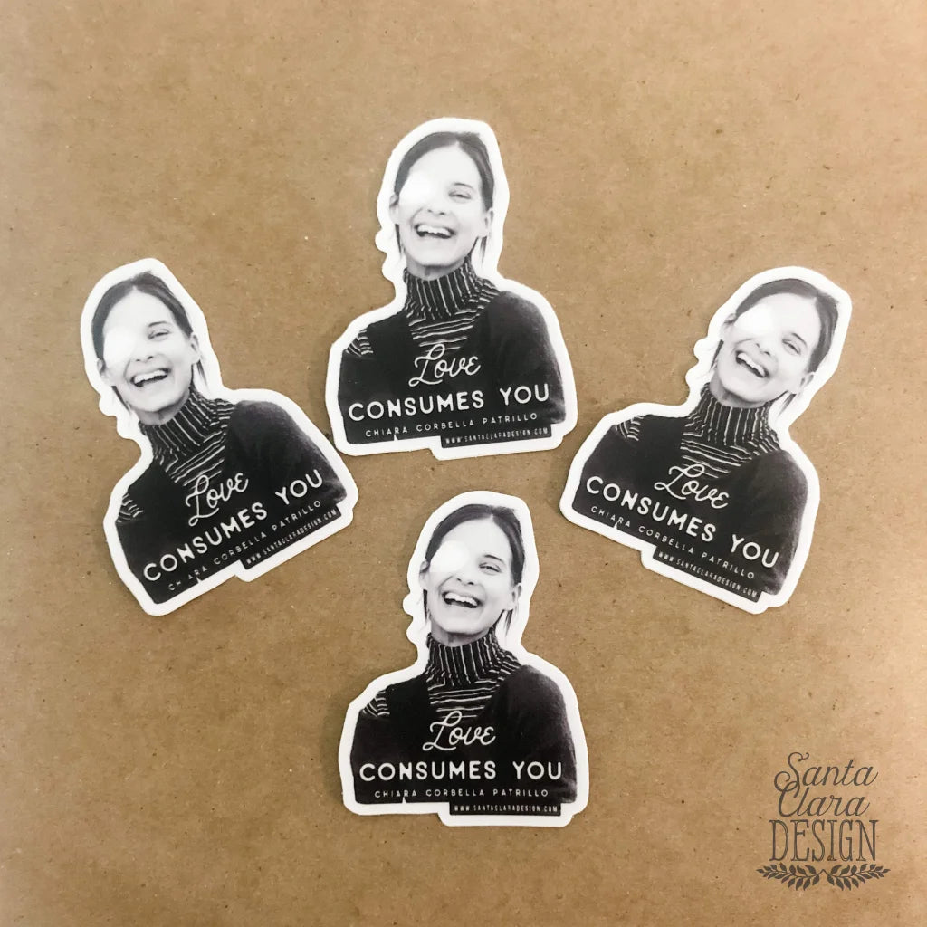 FREE SHIPPING! You'll want to order one (or more!) of these 2.15" x 3" inch decals for your car, tumbler, water bottle, laptop, bike. The decal features words from Servant of God Chiara Corbella Patrillo's letter to her son before her death: "Love consumes you".