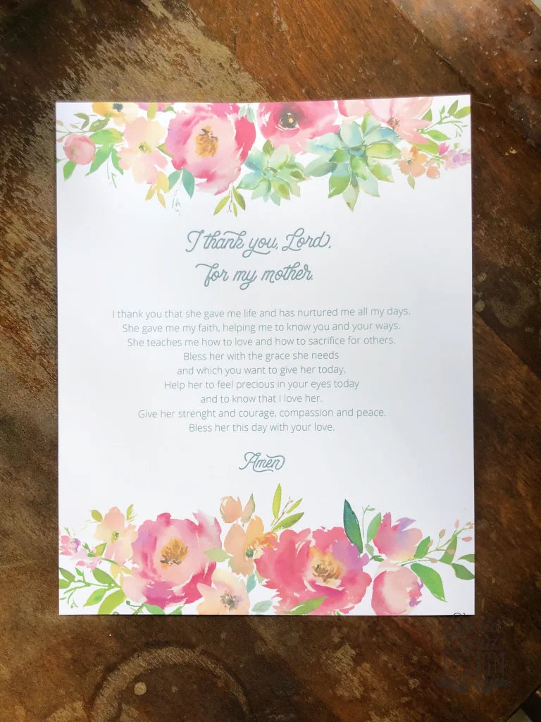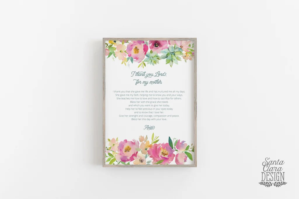 An elegant and inspirational custom designed prayer print for mothers. Perfect for gifts - especially for Mother's Day or your wife, friend, sister or mom's birthday Also a good gift idea for a feast day, Thanksgiving , Christmas, Easter, Valentine's Day, or just because. Will look great in your home or office wall.