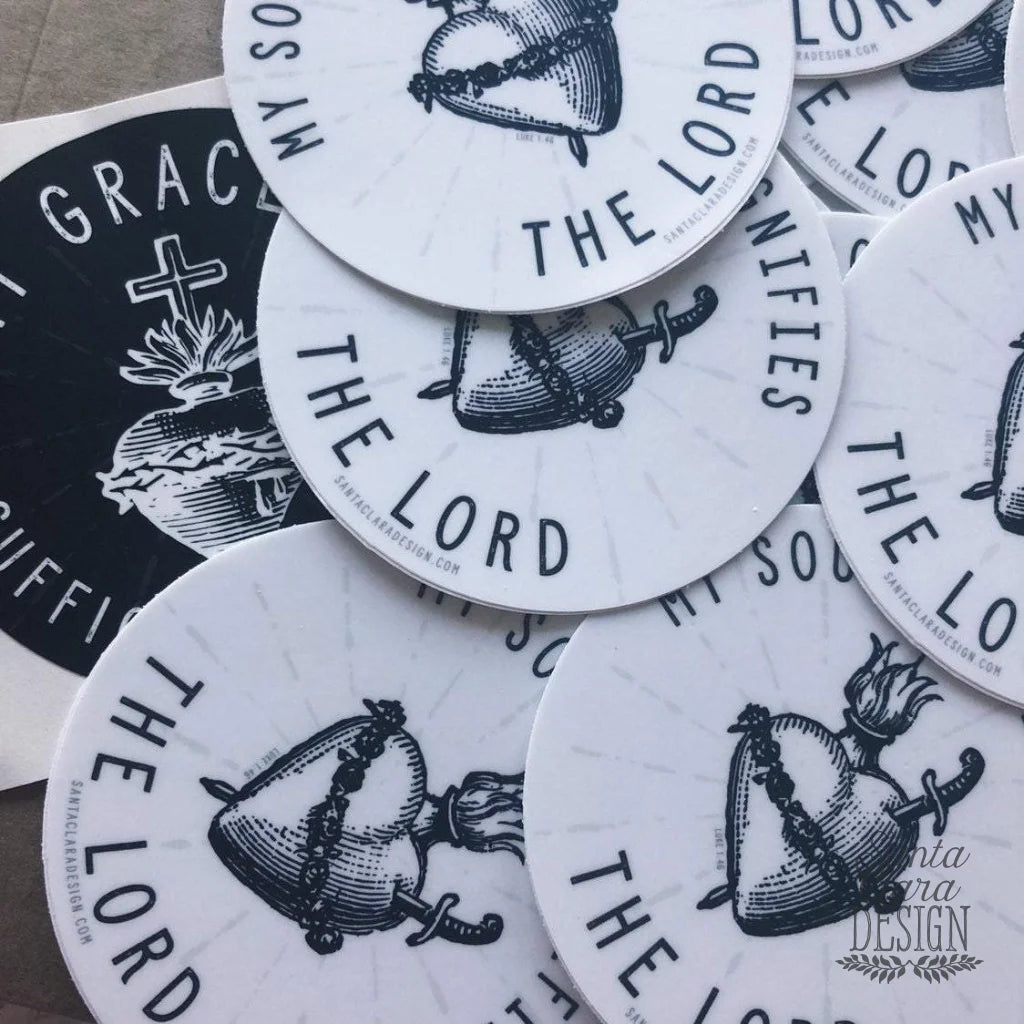 You'll want to order one of these 3 inch round decals for your car, tumbler, water bottle, laptop, bike or wherever you might need a little reminder that we can be like Mary, and magnify the Lord with a pure heart.