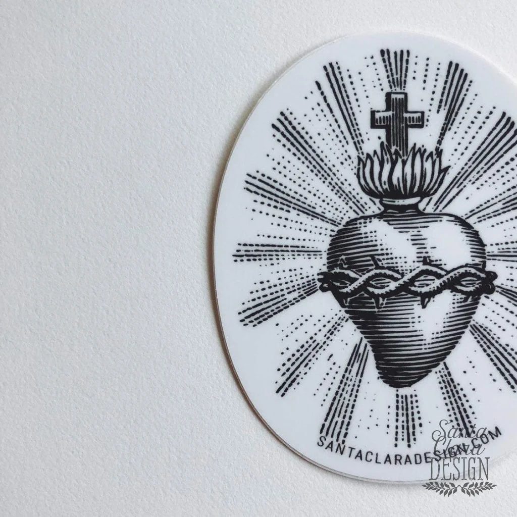 You'll want to order one (or more!) of this 3 inch vinyl Sacred Heart decal for your car, tumbler, water bottle, laptop, bike or wherever you might need a little reminder that Jesus loves you with his whole heart.